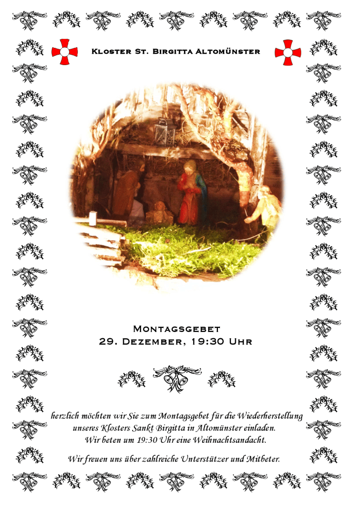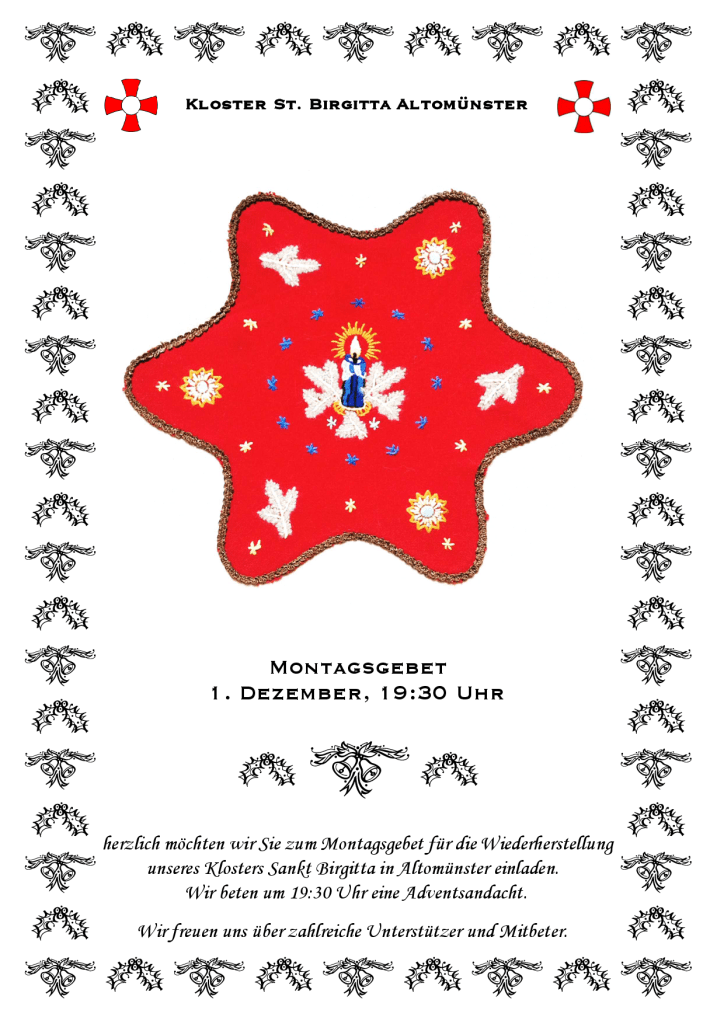 Wir wurden darauf hingewiesen, daß ein Ausschnitt aus einem bekannten Gebet der heiligen Birgitta, der auch auf einem Gebetszettel aus dem Pilgerzentrum unseres Urklosters in Vadstena abgedruckt ist, die Brüder der Gemeinschaft von Taizé, deren meditative und eingängige Gesänge vor allem bei Jugendandachten sehr beliebt sind, zu einem weiteren ihrer musikalischen Kunstwerke inspiriert hat. Auf den Internetseiten der Gemeinschaft sind Text und Noten von „Herre, visa mig vägen“ nebst einem kurzen Video, in welchem alle Stimmen der vierstimmigen Komposition vorgesungen werden, zu finden. Wir freuen uns über diese Würdigung unserer heiligen Ordensgründerin und senden den Brüdern von Taizé herzliche Segenswünsche und Grüße in unserem Herrn Jesus Christus.