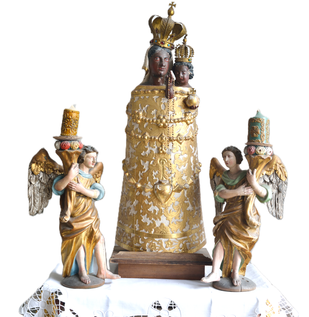 Seit Jahrhunderten vom bayerischen Volke innig verehrt und besonders in den Schrecken des Dreißigjährigen Krieges um Schutz angefleht, wovon noch heute die Mariensäule im Herzen Münchens zeugt, die Kurfürst Maximilian I. als Dank für die Bewahrung der Städte München (wo damals auch unser Konvent Zuflucht fand) und Landshut in diesem verheerendsten aller Kriege auf bayrischem Boden errichten ließ, wurde Maria erst im Ersten Weltkrieg auf Bitten des damaligen Königs Ludwig III. von Papst Benedikt offiziell als Schutzfrau Bayerns bestätigt. Ikonographisch wird sie mit rotem Kleid, blauem, unter dem rechten Arm hindurch nach vorne gezogenen Mantelumhang, offenem Haar, einer großen goldenen Krone, meist in Form einer geschlossenen Bügelkrone oder einer Mitrenkrone, einem langen Szepter in der Rechten und dem einen Reichapfel in der Hand haltenden Jesuskind auf dem linken Arm auf einer schmalen Mondsichel stehend dargestellt.