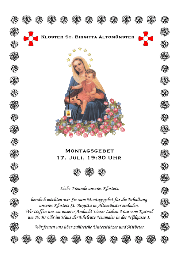 Einladung zum Montagsgebet am 17. Juli
