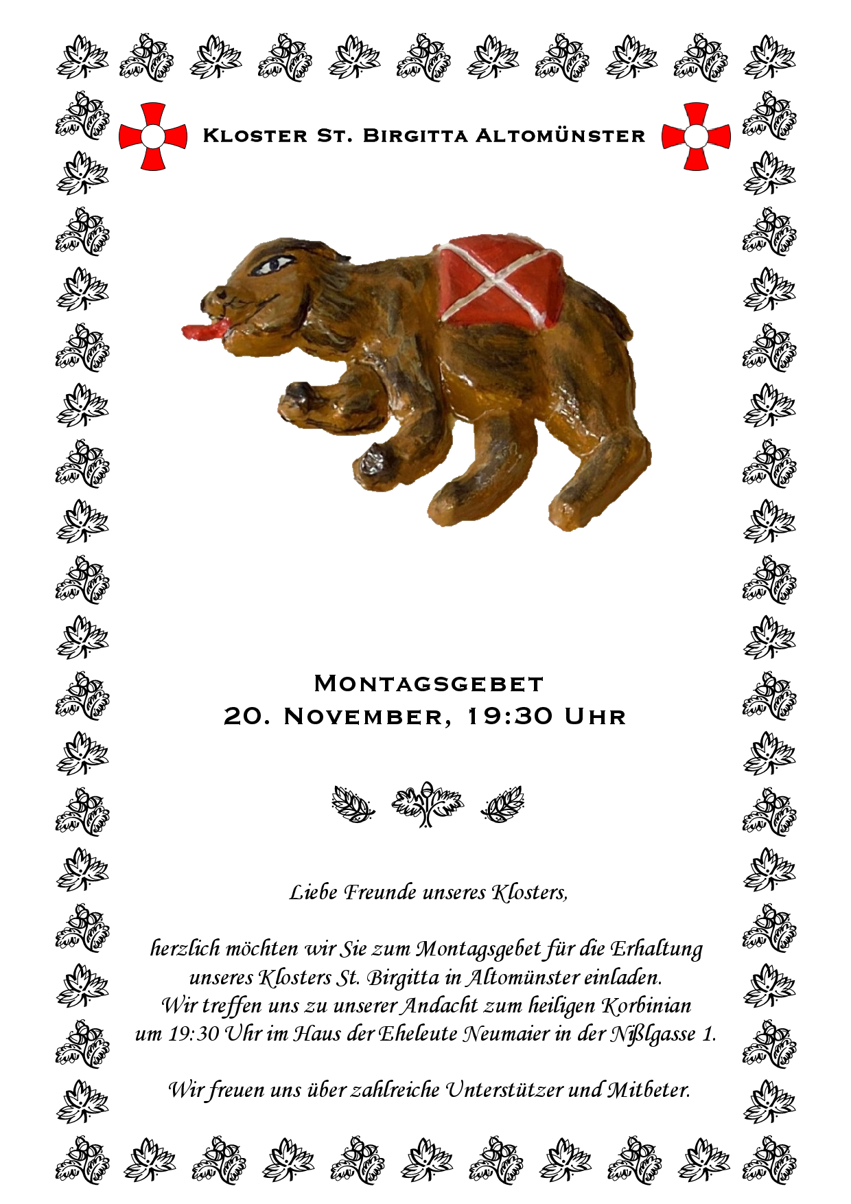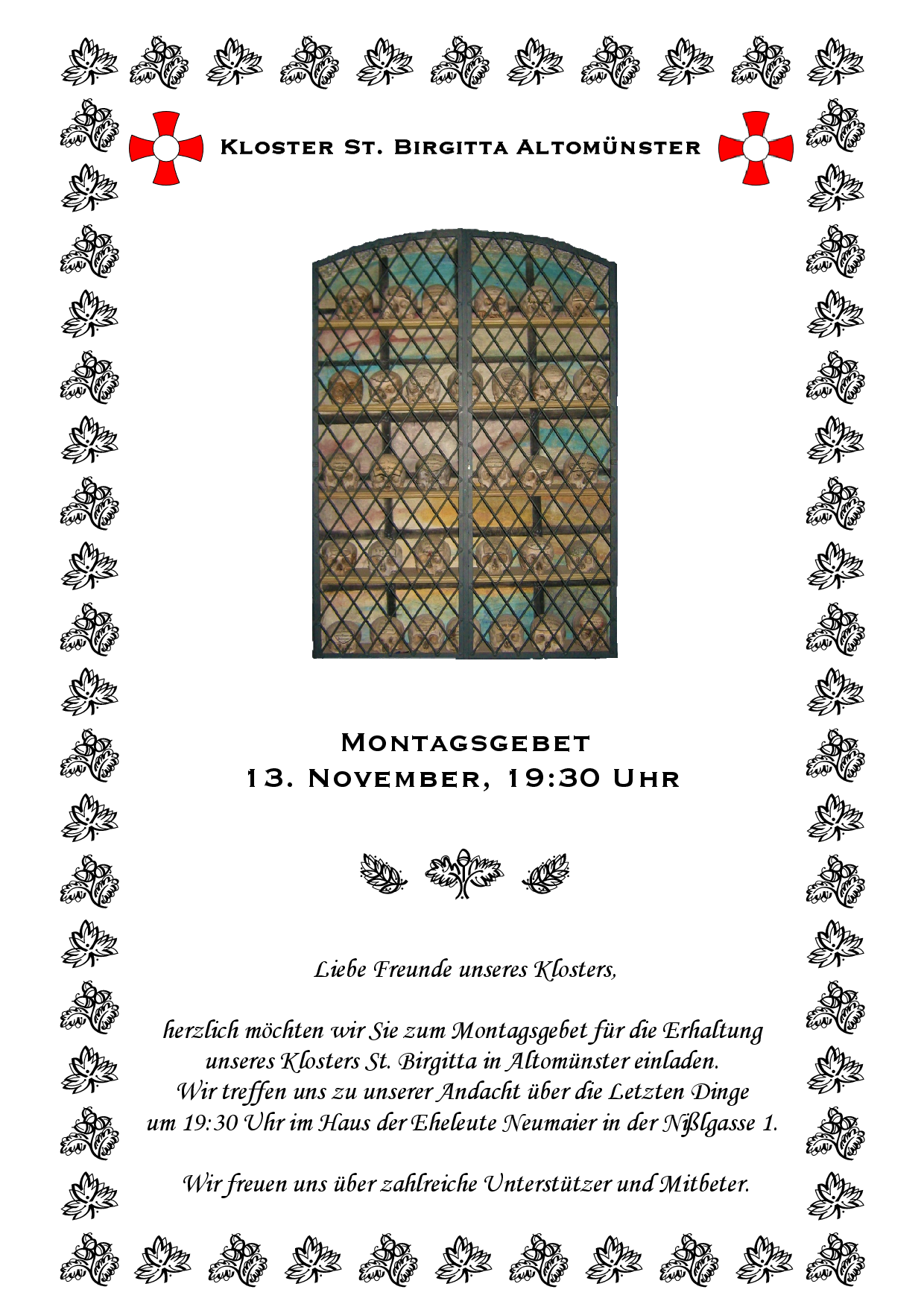 Wir hoffen aber, dass die bevorstehenden langen Winterabende einige Mußestunden bereithalten werden, um Ihnen mehr von dem klösterlichen Leben, welches trotz der bezaubernden Schönheit dieses Ortes ja der eigentliche Grund unserer Entscheidung für diese Lebensform ist, berichten zu können.
