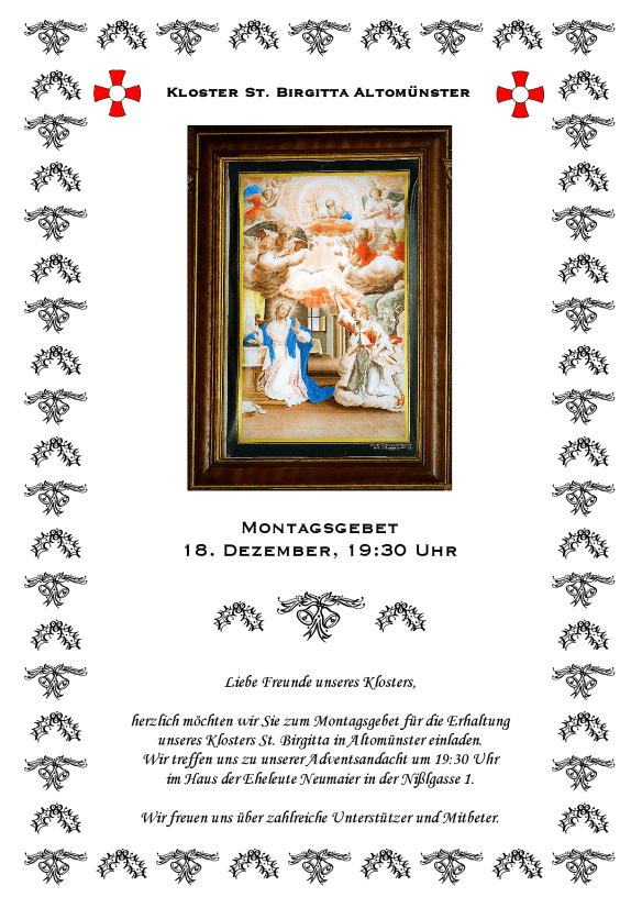 Einladung zum Montagsgebet am 18. Dezember Veröffentlicht am 17. Dezember 2017 von mutterapollonia Teilen mit: Klicke, um auf X zu teilen (Wird in neuem Fenster geöffnet) X Klick, um auf Facebook zu teilen (Wird in neuem Fenster geöffnet) Facebook Gefällt mir Wird geladen … Ähnliche Beiträge