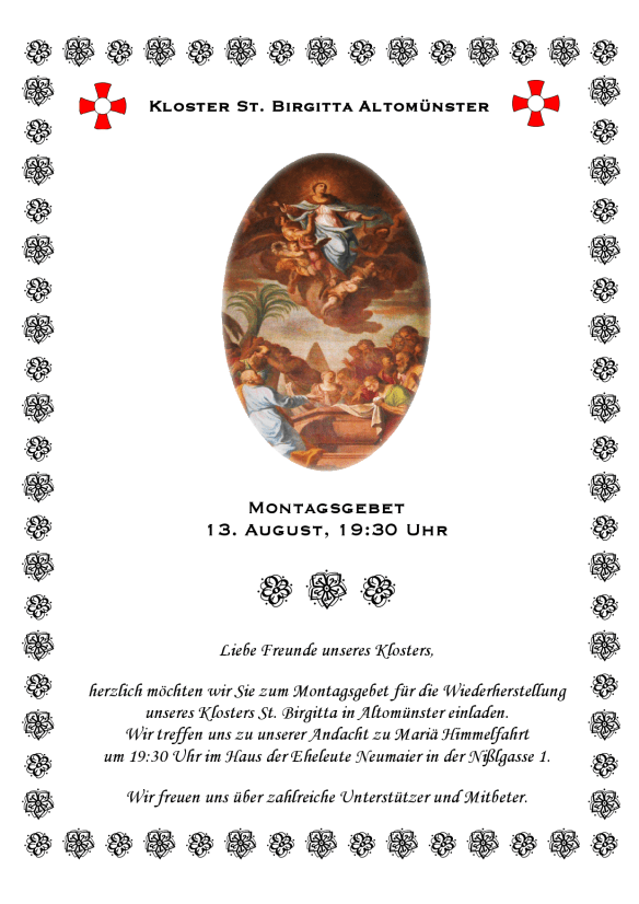Einladung zum Montagsgebet am 13. August