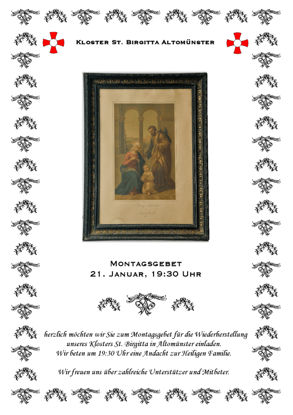 Hier gibt es die Andacht zur Heiligen Familie als pdf-Datei und hier die Lieder für die Andacht.