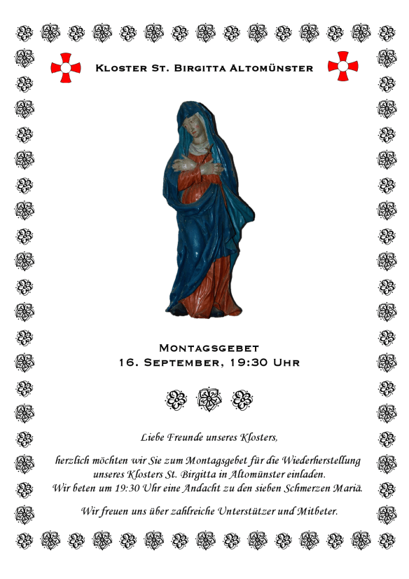 Die Gebetstexte für unsere Andacht zu Mariä Schmerzen sind hier als pdf-Datei zu finden.