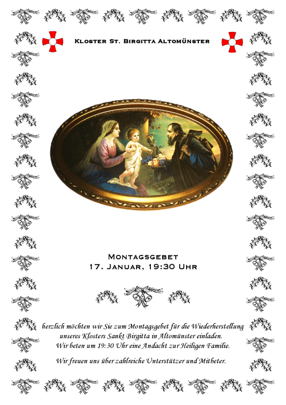 Der Text unserer Andacht zur Heiligen Familie kannhier als pdf-Datei heruntergeladen werden.
