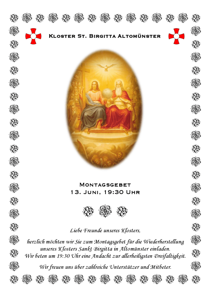 Der Text unserer Andacht zur allerheiligsten Dreifaltigkeit kann hier als pdf-Datei herruntergeladen werden.