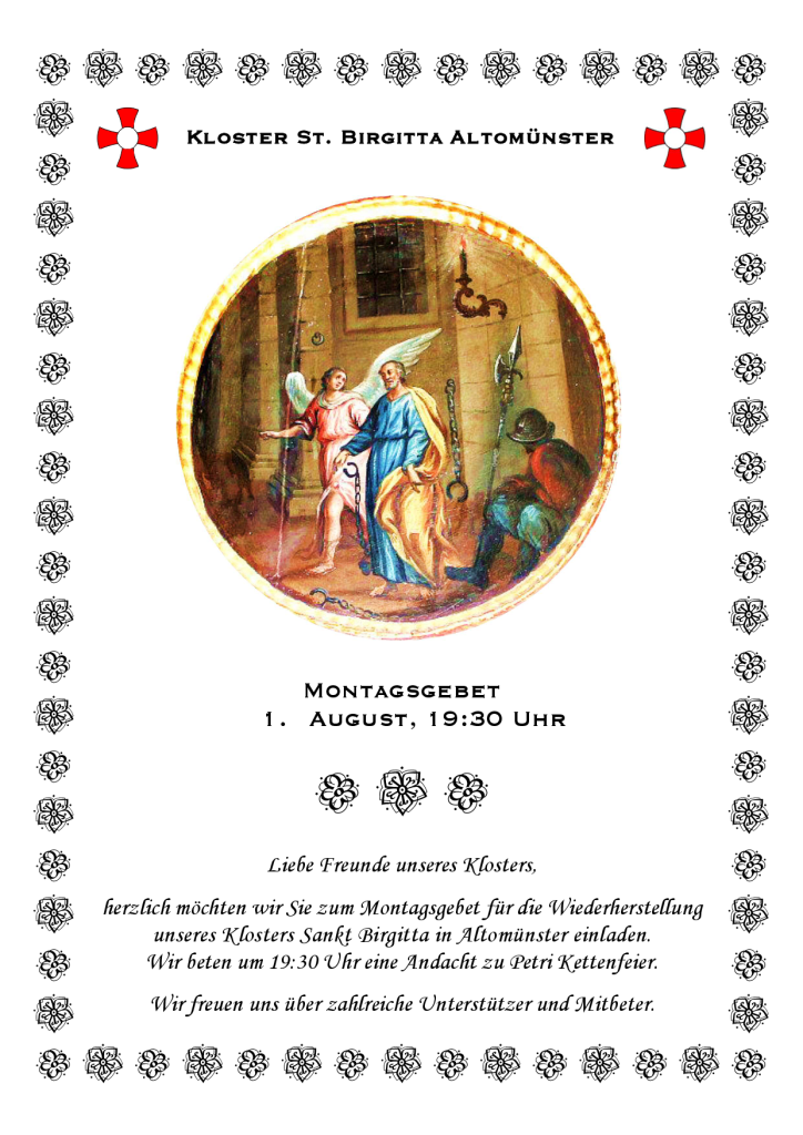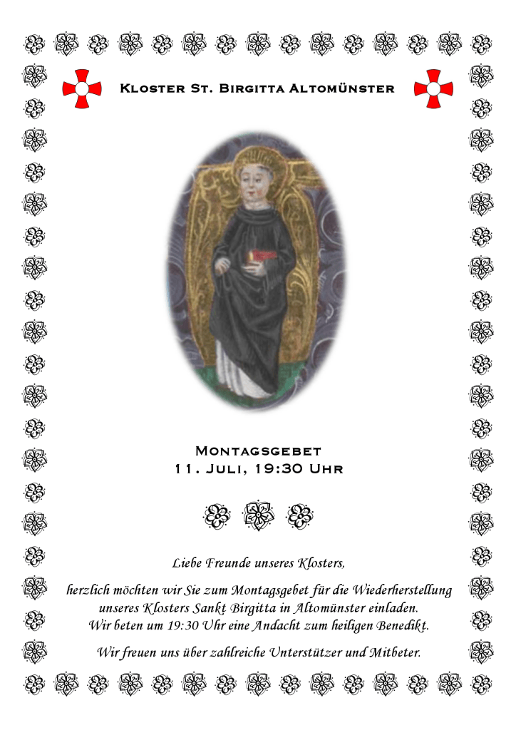 Der Text unserer Andacht zum heiligen Benedikt kann hier als pdf-Datei heruntergeladen werden.
