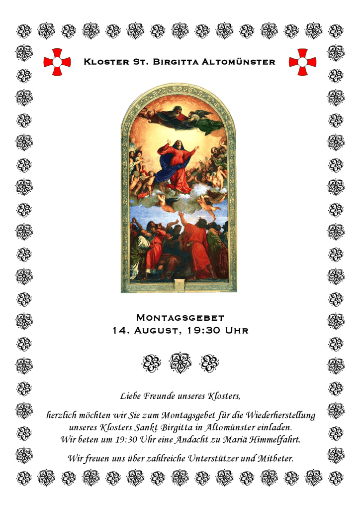Der Text unserer Andacht zu Mariä Himmelfahrt ist hier als pdf-Datei zu finden.