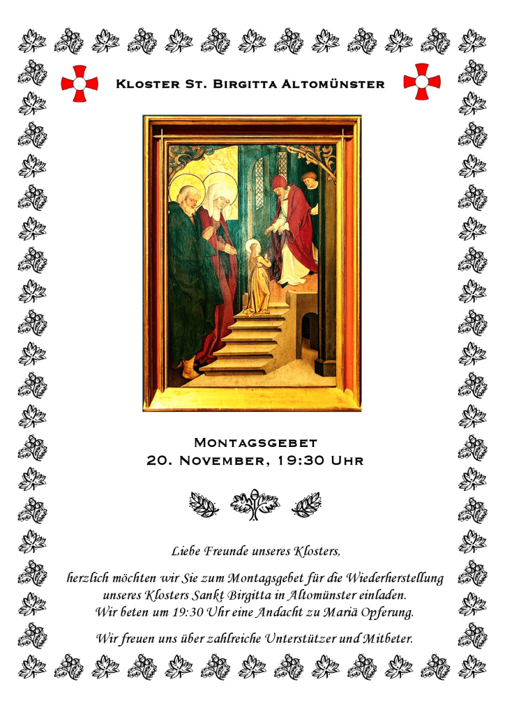 Der Text unserer Andacht zu Mariä Opferung kann hier im pdf-Format heruntergeladen werden.