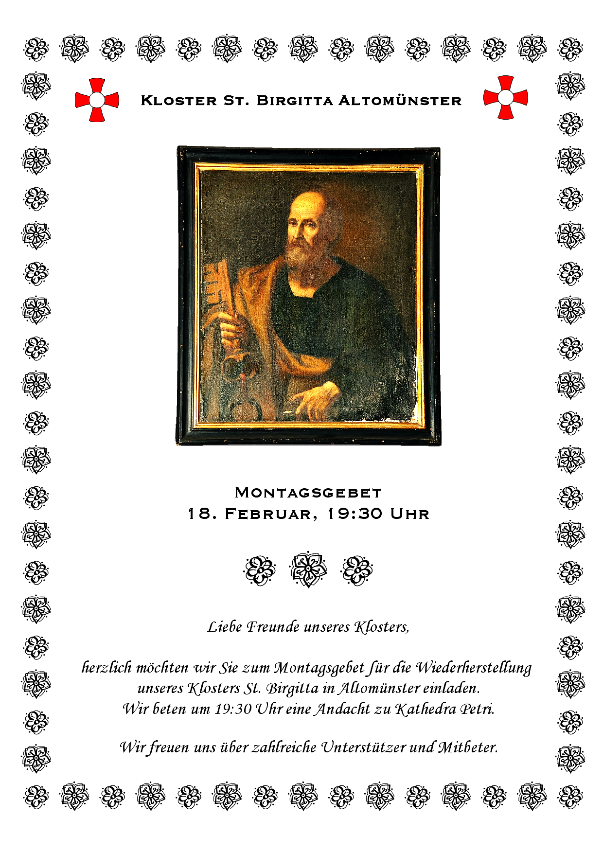 Die Gebetstexte für unsere Andacht zu Kathedra Petri sind hier als pdf-Datei zu finden.