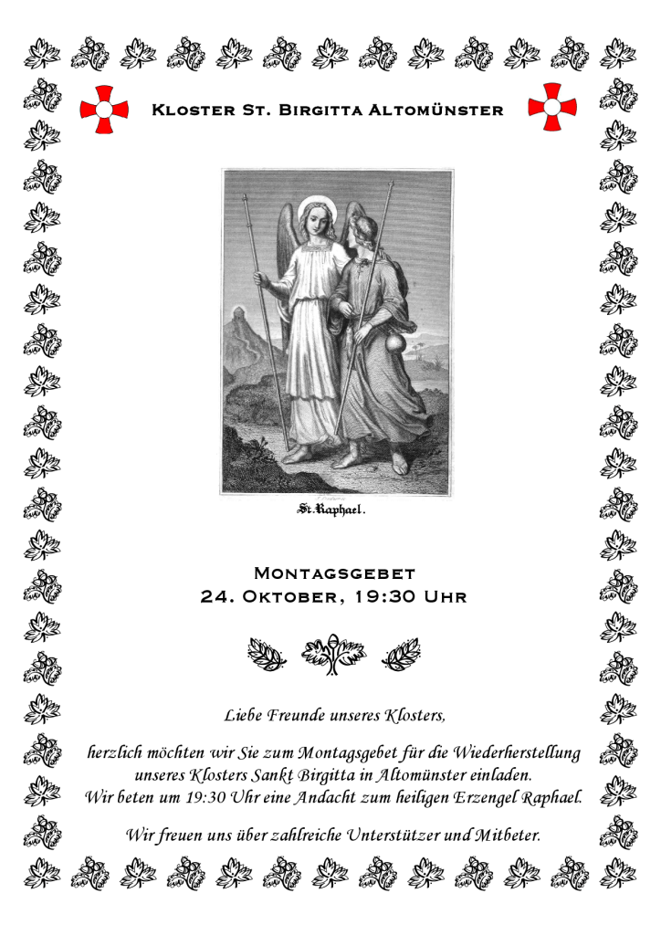 Der Text unserer Andacht zum heiligen Erzengel Raphael kann hier als pdf-Datei heruntergeladen werden.