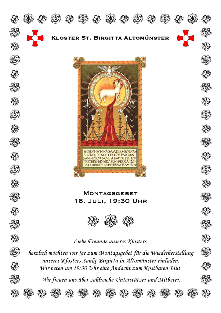 Unsere Andacht zum Kostbaren Blut kann hier als pdf-Datei heruntergeladen werden.