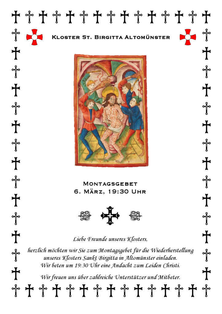 Der Text unserer Andacht zu den heiligen fünf Wunden Jesu kann hier als pdf-Datei heruntergeladen werden.